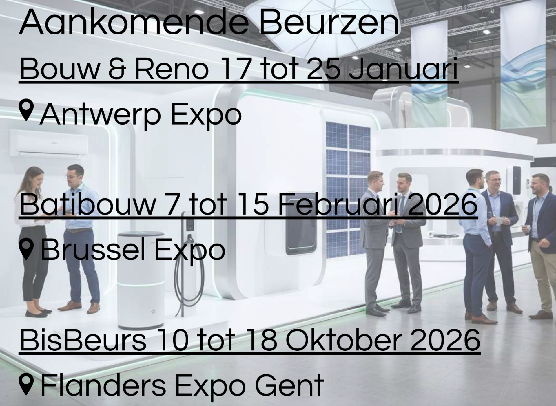 Ontdek oplossingen voor airco’s, warmtepompen, boilers, thuisbatterijen en zonnepanelen en laat je inspireren door wat duurzame energie voor jou kan betekenen.
